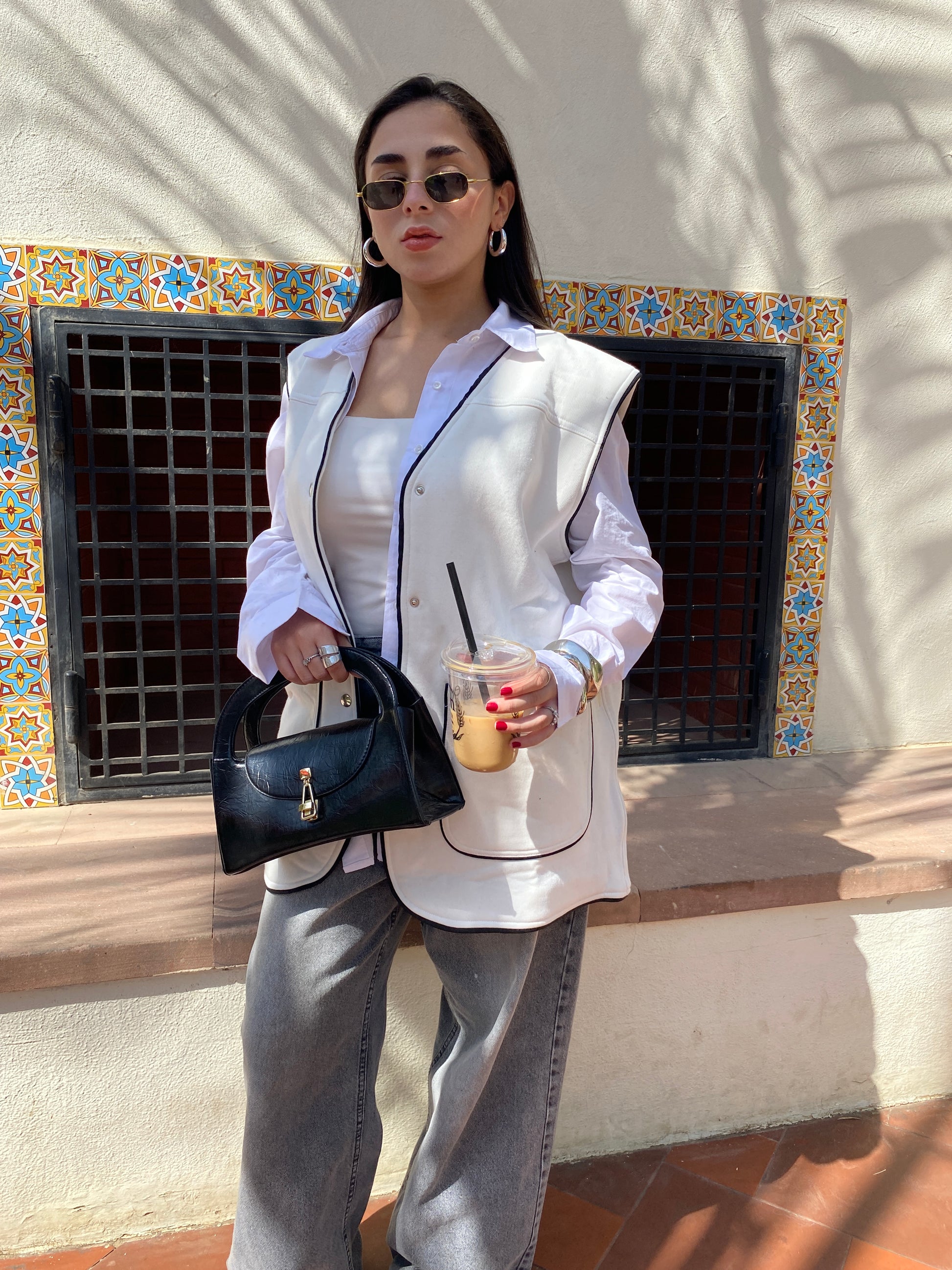 Off White vest with black trim